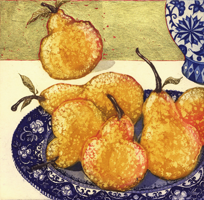Pears with gold leaf